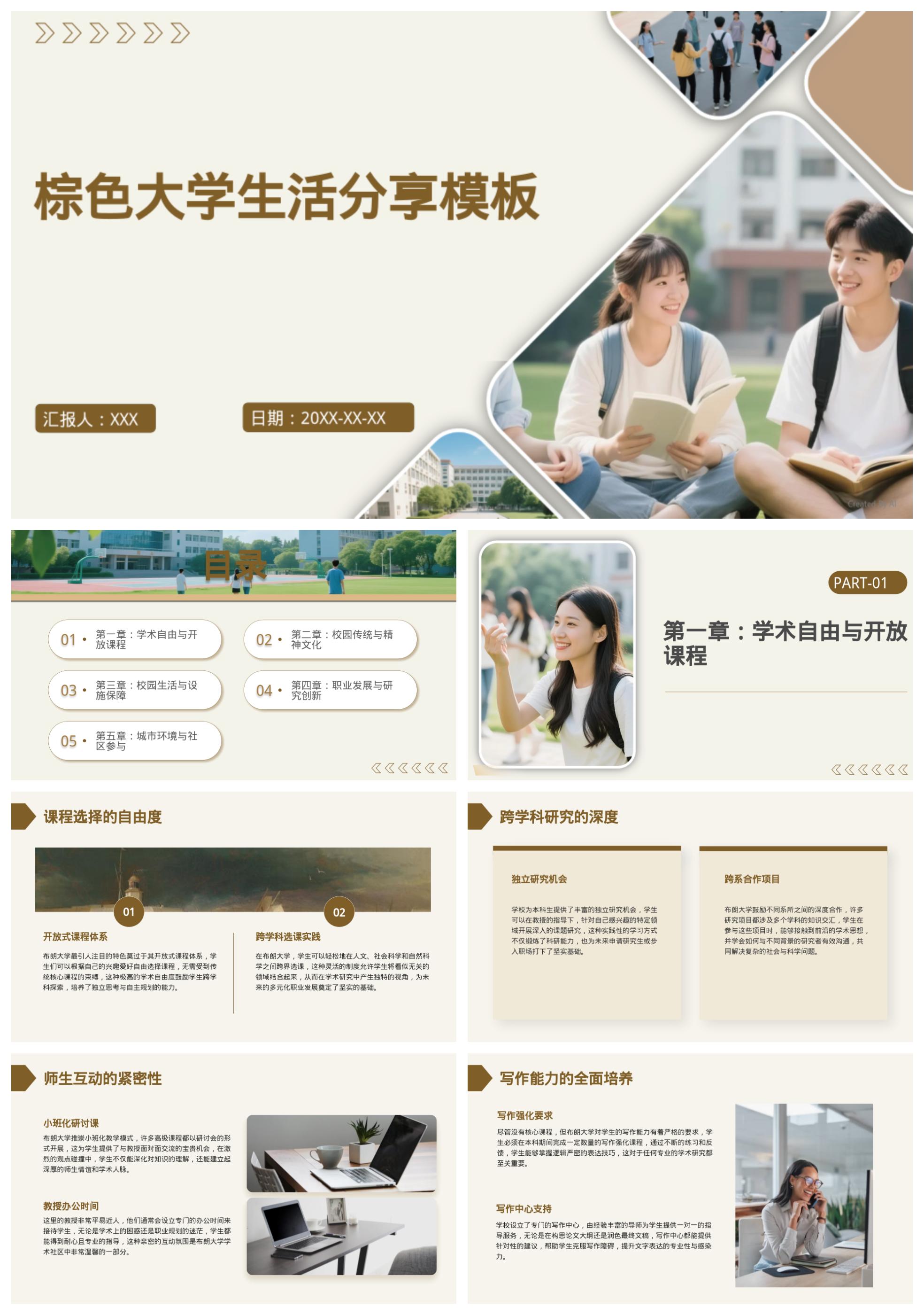 棕色大学生活分享模板